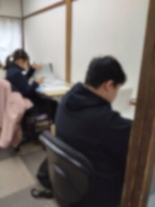 2月1日の受験まで数日に迫った今日も受験生が飯田塾でそれぞれに課題に向き合い、さらなるステップアップをしていました。小さな身体で連日机に向かって問題と格闘しているわけですから疲労感もかなりのもののはずなのに泣き言一つ言わず、真剣なまなざしで取り組む様子は頭が下がる思いです。最後の最後まで悔いを残さないようにやり切ってほしいという思いで私も寄り添っています